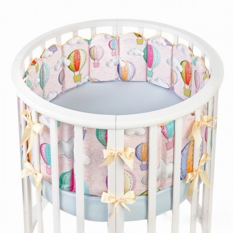 подушки по всей окружности круглой и овальной кроватки, высота 28 см.
