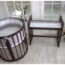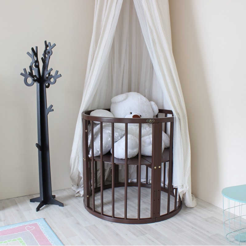 Lavantana - уникальная детская кроватка-трансформер на колесиках. Главная отличительная особенность изделия - круглая форма. Благодаря ей модель является не только функциональной мебелью, но и стильным предметом интерьера, способным гармонично дополнить дизайнерскую задумку оформления детской комнаты.
